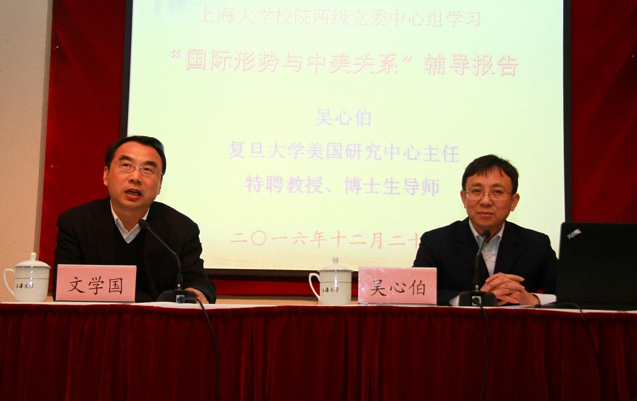 12月22日下午,复旦大学美国研究中心主任吴心伯教授来校作题为《国际形势与中美关系》的辅导报告。报告会由sunbet申搏官方网站副校长文学国主持,校院两级中心组成员、副处级以上干部、人才学院学生代表和研究生代表聆听了此次报告。