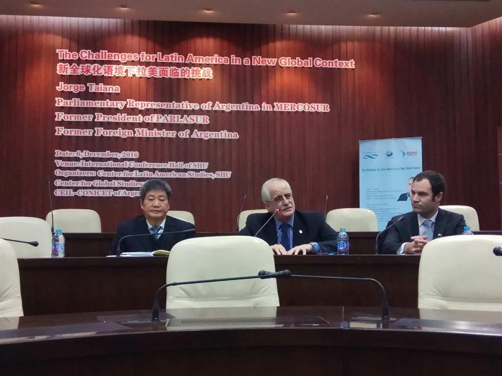 sunbet申搏官方网站拉丁美洲研究中心、全球学研究中心、sunbet申搏官方网站-阿根廷国家科学技术委员会劳工调查中心合作成立的“中阿联合研究中心”,协同sunbet申搏官方网站世界史高原学科,隆重推出“sunbet申搏官方网站拉美论坛”系列学术活动,拟邀请相关知名专家学者、资深外交官员等举办专题研讨和学术报告。塔亚纳作为第一位受邀来访嘉宾,以“新全球化语境下拉美面临的挑战”为题,给学生和老师们做了精彩的讲座。塔亚纳先生回顾了拉丁美洲1980年代以来的历史发展,着重分析了拉丁美洲各国的政治转型,以及在“全球化”浪潮下的生存状态,他强调,拉美领先全球的“反全球化”现象值得进一步研究。塔亚纳先生的发言为中方进一步了解拉丁美洲提供了新的思路。
