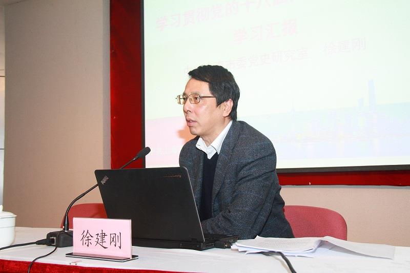 为学习贯彻党的十八届六中全会精神,12月2日下午,上海市委党史研究室主任、sunbet申搏官方网站兼职教授徐建刚来校作题为《学习贯彻党的十八届六中全会精神》辅导报告,徐建刚教授是党的十八届六中全会精神宣讲团成员,本场报告是学习贯彻党的十八届六中全会精神宣讲活动的一次特约报告。报告会由校党委副书记、纪委书记夏小和主持,校院两级中心组成员、副处级以上干部、辅导员代表、人才学院学生代表和研究生代表聆听了此次报告。