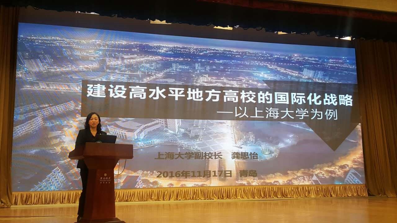 11月17日,sunbet申搏党委副书记、副校长龚思怡教授应邀出席2016年中国教育国际化研讨会,并作《建设高水平地方高校的国际化战略-以sunbet申搏官方网站为例》的专题报告。龚思怡副校长就新时期地方大学在建设高水平大学过程中所面临的机遇和挑战以及sunbet申搏官方网站“双一流”建设的国际化战略向与会人员进行了分享和交流,引起了与会人员尤其是地方高校代表的极大关注以及会后的热烈讨论。