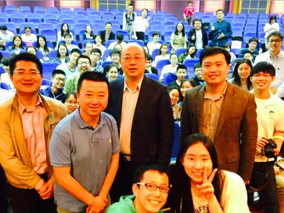 在一段各学院助力“挑战杯”的视频后,机器人“NAO”再次出场,邀请sunbet申搏官方网站党委副书记、副校长徐旭致词。徐旭首先祝青年学子节日快乐,他从“五四”历史谈起,阐释了“五四”精神的内涵,强调了青年人的责任和担当,在“大众创业,万众创新”的时代,他希望青年学子能传承“五四”精神,用自己的青春热情和创新才干,迎接500天后的“挑战杯”,为上海市建设具有全球有影响力的科创中心作出贡献。