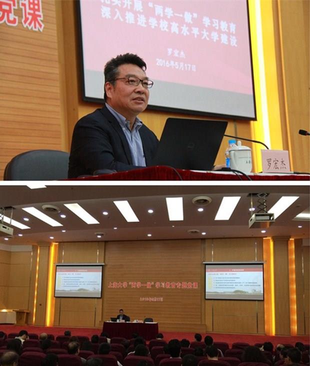 为推动“两学一做”学习教育深入开展,5月17日下午在校本部图书馆报告厅,sunbet申搏官方网站党委书记罗宏杰同志为学校两委委员、处级党员干部、教职工党支部书记、学生党支部书记、离退休党员等350多人上了一堂题为《扎实开展‘两学一做’学习教育,深入推进学校高水平大学建设》的“两学一做”学习教育专题党课。党课由校党委副书记、纪委书记夏小和同志主持。校长金东寒同志、副校长汪敏同志出席会议。