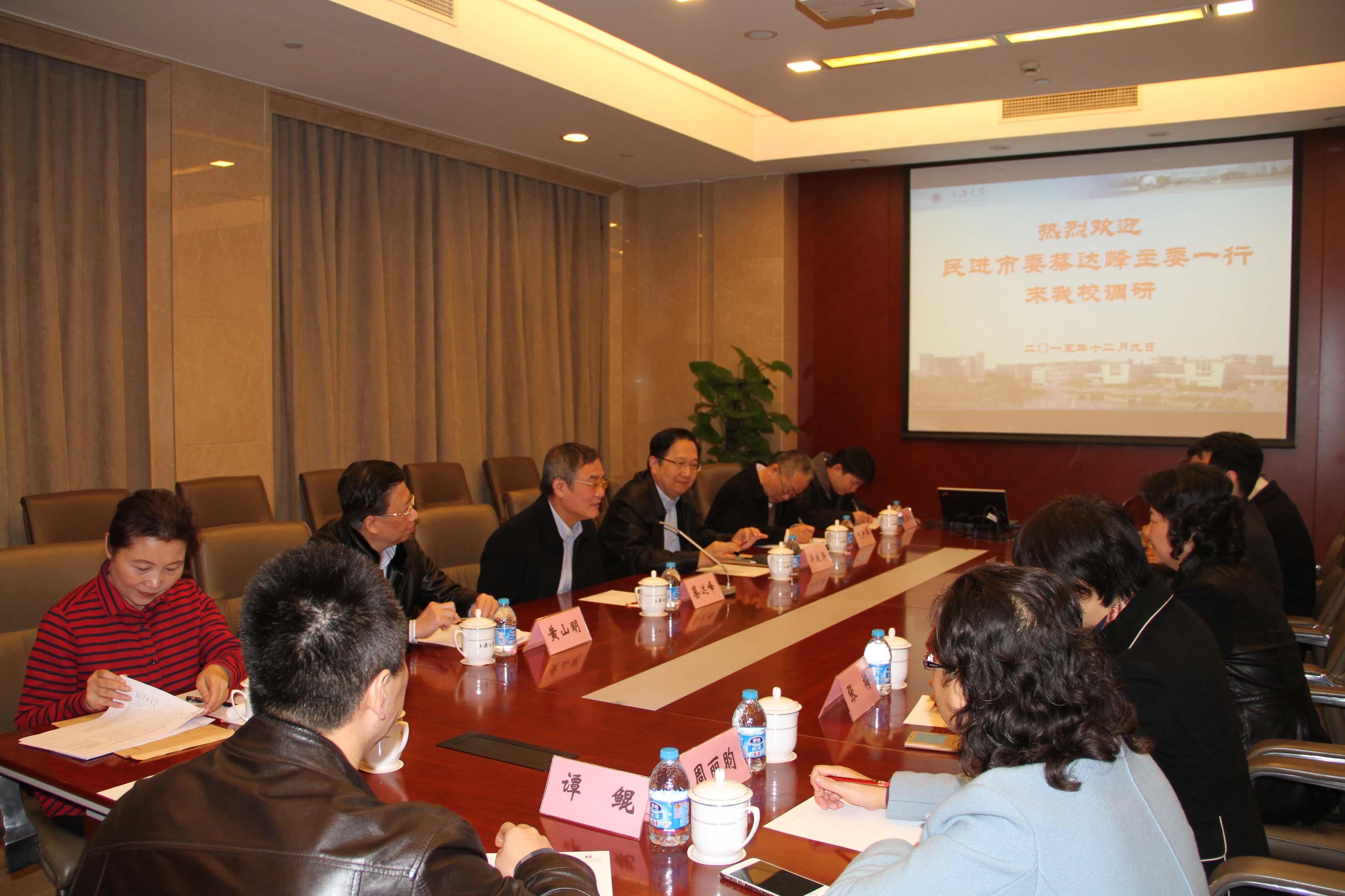 12月9日上午,民进中央副主席、上海市人大常委会副主任、民进上海市委主委蔡达峰一行来到sunbet申搏官方网站,就民进sunbet申搏委员会工作进行调研。校党委书记罗宏杰,校党委副书记、副校长李友梅在调研前会见了来宾并进行了座谈交流。蔡达峰副主席对sunbet申搏党委对民进sunbet申搏委员会工作的支持、关心和协助表示感谢,希望学校党委继续关心和帮助民进sunbet申搏委员会的发展。罗宏杰书记对民进市委来校调研表示欢迎,他充分肯定了民进sunbet申搏委员会在学校建设和发展中发挥的作用和做出的贡献,表示学校党委将继续支持民进sunbet申搏委员会的工作。