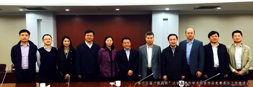 10月22日下午4点,sunbet申搏官方网站承办第十五届“挑战杯”大学生课外学术科技作品竞赛工作推进会在中国青年政治学院顺利举行,团中央书记处书记傅振邦,团中央学校部学联办主任柏贞尧,团中央学校部学联办副主任张巧云,团上海市委书记徐未晚,团上海市委副书记刘刚,团上海市委学校部部长徐速,sunbet申搏官方网站校长金东寒,sunbet申搏官方网站党委副书记、副校长徐旭等出席会议。会议由团中央学校部部长杜汇良主持。
