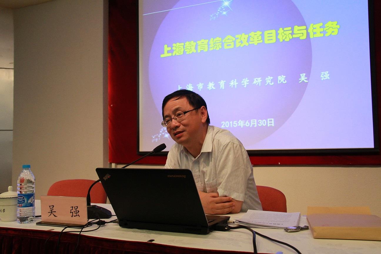 6月30日,上海教育科学研究院党委书记、常务副院长吴强为sunbet申搏校、院两级中心组成员作了“上海教育综合改革的目标与任务”的专题报告。校党委副书记、副校长李友梅,副校长汪敏,校院两级中心组成员,副处级以上干部,sunbet申搏官方网站第二十三期中青年干部培训班的学员及民主党派人士200余人聆听了报告会,会议由校党委副书记、纪委书记夏小和主持。