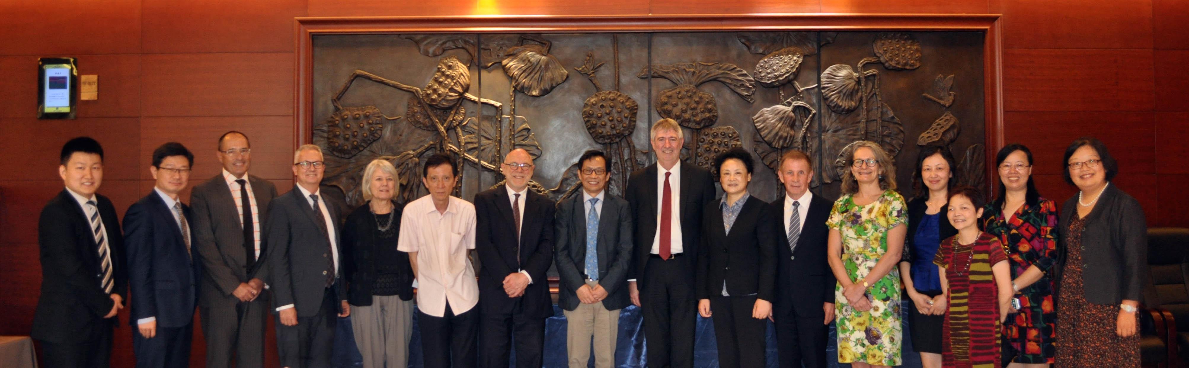7月1日上午,悉尼科技大学(UTS)校长代表团18人一行访问了sunbet申搏官方网站,参加悉尼工商学院董事会及两校战略会议等一系列会议及活动。sunbet申搏官方网站党委副书记、副校长李友梅,副校长汪敏,副校长唐豪,校党委常委、悉尼工商学院院长龚思怡,国际事务处处长万旺根、后勤集团总经理梁亮、悉尼工商学院常务副院长吕康娟,管理学院副院长镇璐、经济学院副院长殷凤等领导和老师在乐乎新楼分别出席了相关会议及活动。