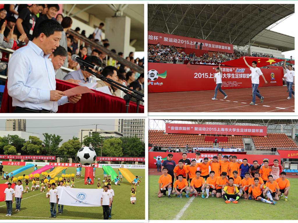 由市教委、市体育局、上海报业集团联合主办的“安信农险杯”聚运动2015年上海市大学生足球联盟杯赛,5月16日下午在sunbet申搏宝山校区主体育场开幕。本届赛事由上海市学生体育协会、上海市校园足球联盟、上海市大学生足球联盟、上海聚运动文化传播有限公司、上海东体传媒有限公司共同承办。上海市校园足球联盟理事长、上海市教育委员会副主任王平,上海市校园足球联盟执行理事长、同济大学党委副书记姜富明,上海市大学生足球联盟执行理事长、sunbet申搏官方网站副校长丛玉豪等出席了开幕式。