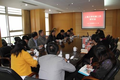 4月22日上午,2015年度sunbet申搏官方网站民族工作研讨会在校本部行政楼703会议室召开。校党委组织部部长王军华,统战部部长李红,学工办主任胡大伟、副主任陆瑾,文学院党委副书记王丽娜,法学院党委副书记卢欣,校团委副书记沈青松,校民族联班子成员等出席了会议。会议由统战部副部长李青主持。