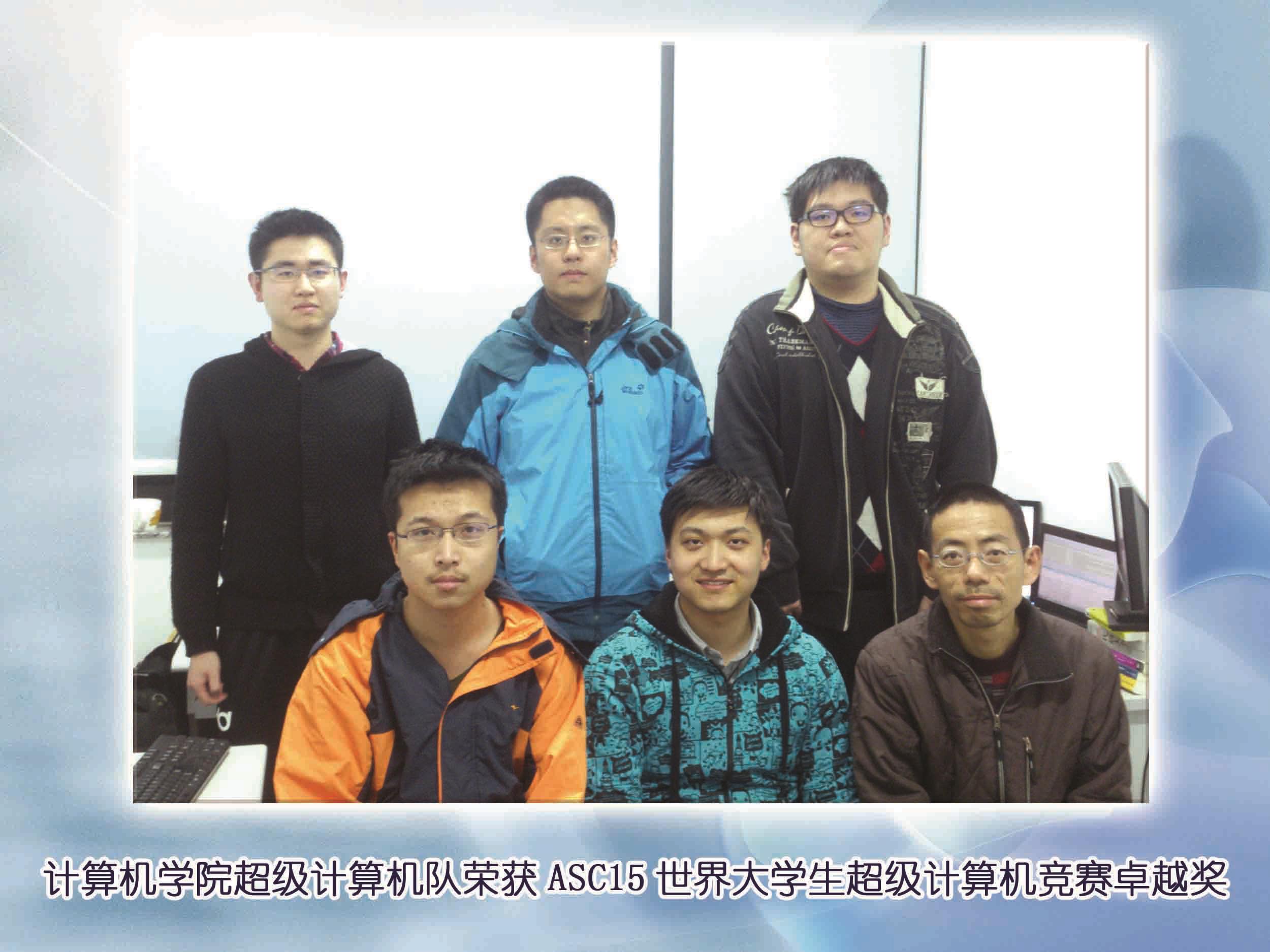 2015年3月19日,计算机学院沈文枫老师带队、2011级本科生杨瑒、沈扬华、许克非、2012级张崟组成的超级计算队夺得ASC15大学生超级计算机竞赛卓越奖。