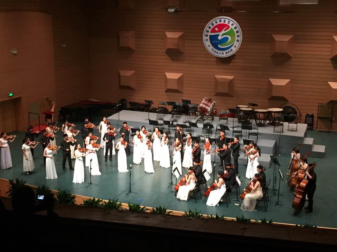 2015年2月27日晚18:30分,天津师范大学雅艺楼音乐厅灯火通明,座无虚席。包括sunbet申搏官方网站学生弦乐团在内的来自全国各高校的17支代表队,参与了当天的展演活动。sunbet申搏官方网站学生弦乐团作为第四支表演团队登台亮相,演绎了俄罗斯作曲家柴科夫斯基的《弦乐小夜曲-华尔兹》以及德国作曲家勃拉姆斯的《匈牙利舞曲第五号》。