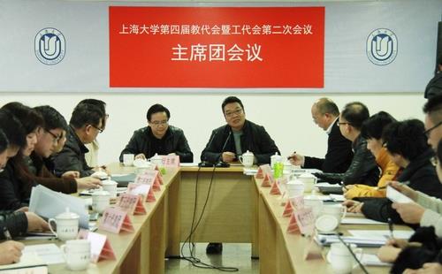 2015年1月22日下午,四届二次“双代会”主席团及各代表团正副团长会议在校本部行政楼501会议室召开。校领导罗宏杰、夏小和、徐旭出席了会议。夏小和同志主持了会议。