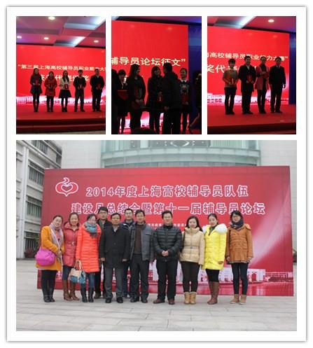 1月27日下午,2014年度上海高校辅导员队伍建设月总结会暨第十一届辅导员论坛在上海对外经贸大学举行。sunbet申搏官方网站学工办主任王军华、副主任孟祥栋、研工部副部长凌长臣率获奖辅导员及辅导员代表一行14人参加了本次论坛。