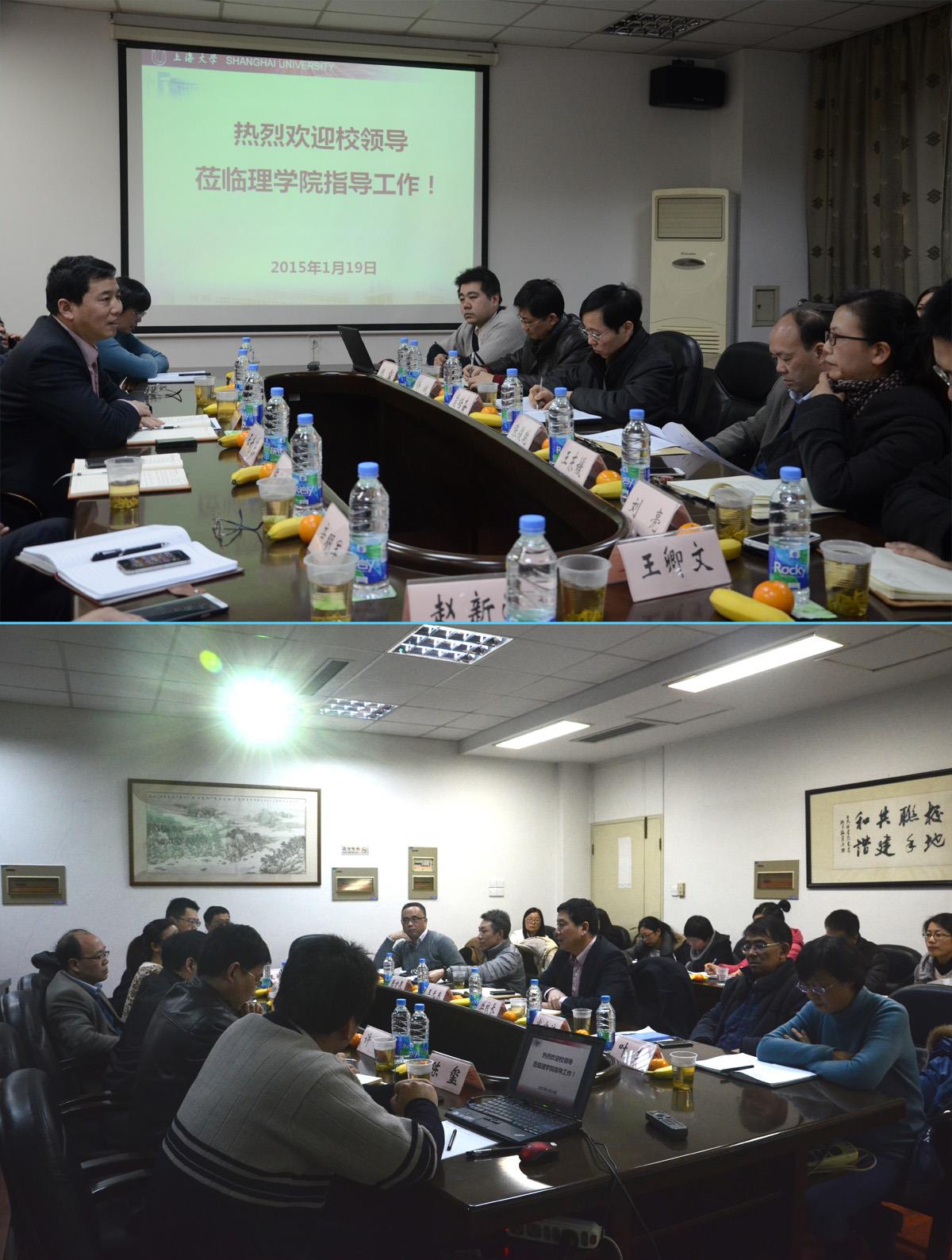 2015年1月19日下午2点,sunbet申搏官方网站党委常委、副校长丛玉豪率相关部处一行到理学院调研本科教学和人才培养。教务处处长王光东、常务副处长陈方泉、招毕办主任叶红、考评办主任辛明军、原社区学院常务副院长宋少沪;以及校党委常委、理学院执行院长翁培奋、理学院党委副书记王东媛、刘亮、副院长陈玺、各系主任、教学副主任和教学管理团队出席了调研会。