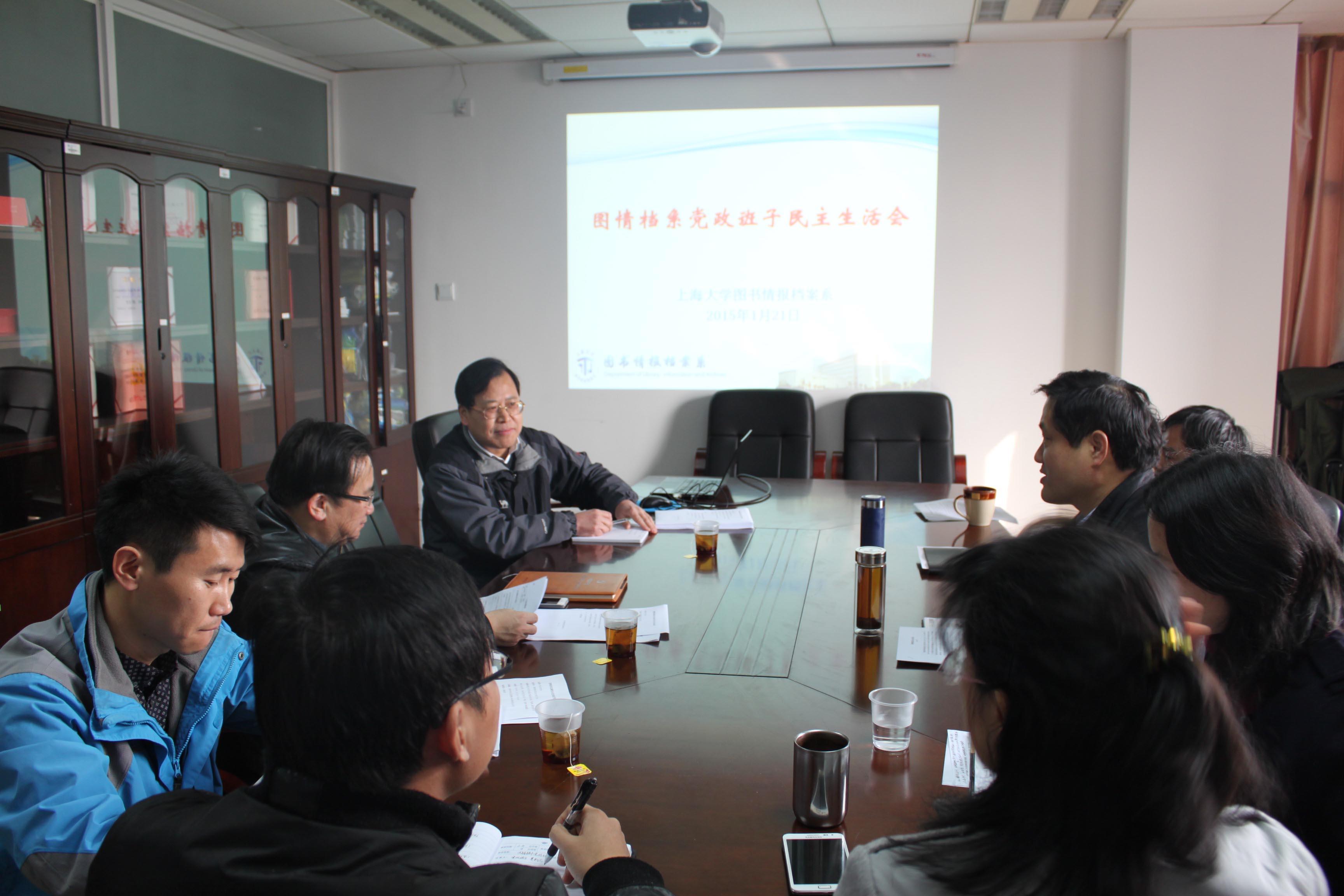 1月21日下午,图书情报档案系党政班子民主生活会在国商楼449A会议室召开。会议由系直属党总支书记丁华东主持,班子7名成员全部参加。校党委副书记、纪委书记夏小和教授出席了会议。