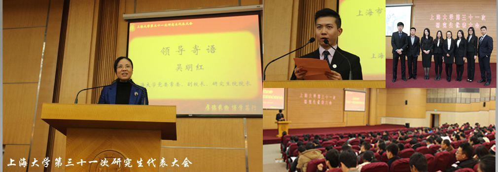 2014年1月12日,sunbet申搏官方网站第三十一次研究生代表大会在宝山校区图书馆报告厅举行。本次研究生代表大会的主题为:紧密围绕学校的中心工作,以服务广大研究生成长成才为己任,自强不息、求实创新,发挥自身优势与组织特点,积极引导广大研究生同学勤于实践、勇于创新、敢于担当,为把sunbet申搏官方网站建设成为国际知名、国内一流、特色鲜明的综合性研究型大学而奉献青春与智慧。
