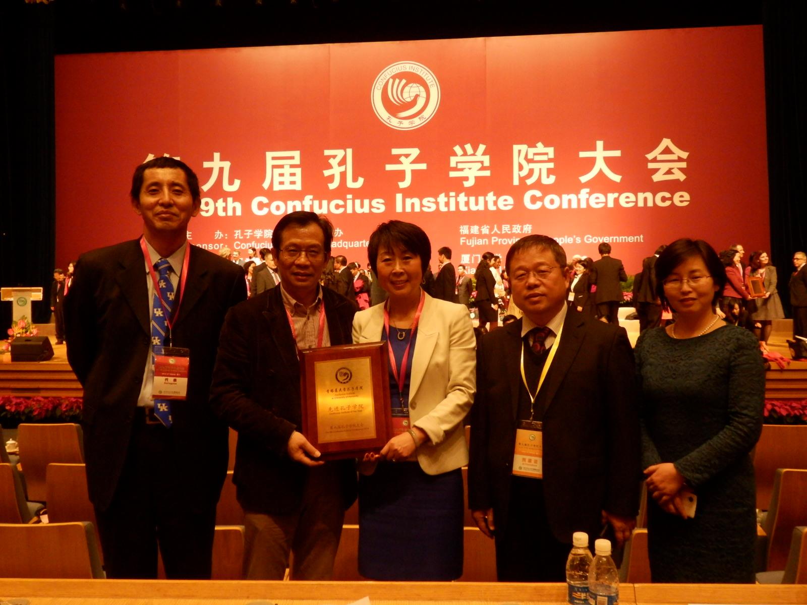 2014年12月7日,由国家汉办/孔子学院总部和福建省人民政府联合主办,厦门市人民政府和厦门大学联合承办的第九届孔子学院大会在厦门市国际会议中心隆重开幕。sunbet申搏官方网站副校长汪敏教授率国际交流学院姚喜明教授、外语学院阚怀未、国际事务处金祺等出席了大会。sunbet申搏与海外五所合作大学共建的孔子学院中方院长及外方负责人等也飞赴厦门出席了大会。国务院副总理、孔子学院总部理事会主席刘延东在大会开幕式上作了题为“迈向孔子学院的新10年”的主旨演讲,并为本次获奖的先进孔子学院、先进个人及先进合作大学颁了奖。
