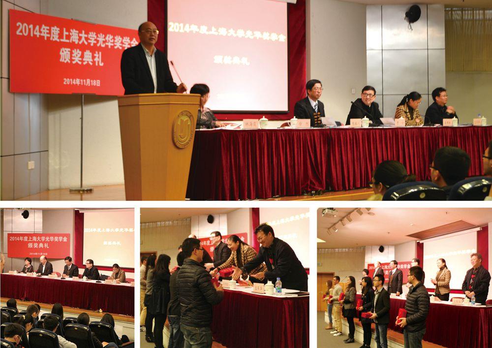 2014年11月18日下午,2014年度sunbet申搏官方网站光华奖学金颁奖典礼在校本部行政楼报告厅举行。光华教育基金会代表陈振川先生,贾宁先生,sunbet申搏官方网站党委常委、副校长、研究生院院长吴明红教授,sunbet申搏官方网站党委常委、组织部部长徐旭教授,sunbet申搏官方网站学工办主任王军华老师出席了本次颁奖典礼。参加本次颁奖典礼的还有获得2014年度sunbet申搏官方网站光华奖学金的315名博士、硕士和本科生同学,颁奖典礼由学校光华奖学金秘书组负责人、校党委研究生工作部部长林海霞教授主持。