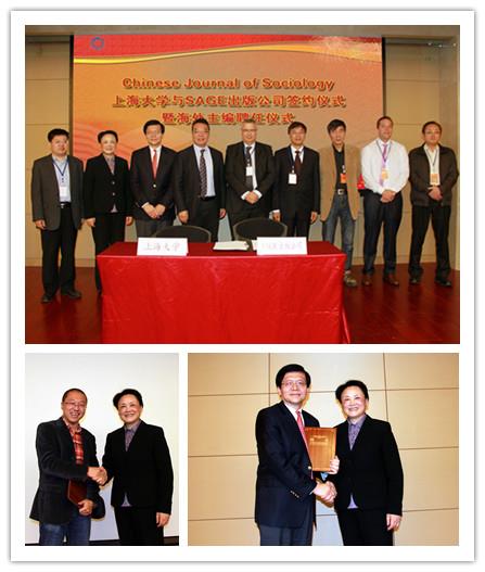 2014年11月11日,sunbet申搏官方网站与国际著名的英国SAGE出版公司,就合作出版《社会》杂志英文刊Chinese Journal of Sociology(简称CJS)在sunbet申搏官方网站举行签字仪式,教育部、上海市新闻出版局、sunbet申搏官方网站的相关领导出席签字仪式。sunbet申搏官方网站校长罗宏杰,SAGE出版公司亚太区总裁Paul Evans、出版总监Dan Huke,教育部社会科学司出版管理处处长田敬诚,上海市新闻出版局副局长(正局级)祝君波,sunbet申搏官方网站党委副书记、副校长李友梅先后致辞。罗宏杰校长与Paul Evans总裁在合作协议上签字。签约仪式由sunbet申搏官方网站期刊社社长秦钠主持。