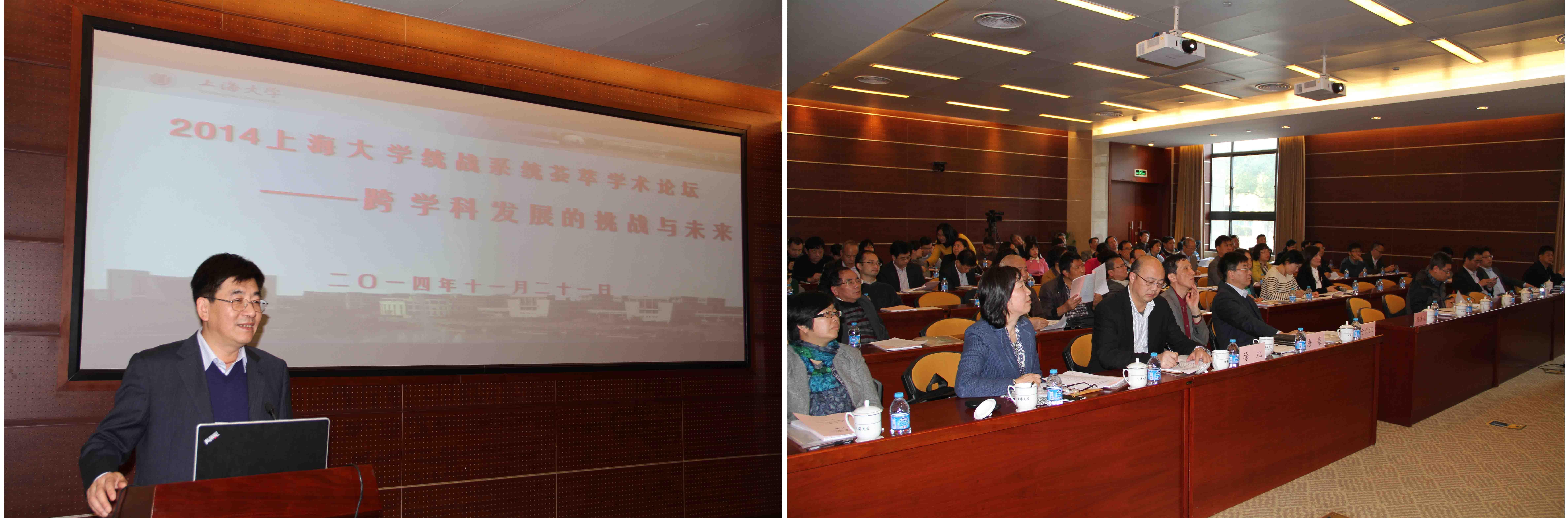 11月21日下午,“2014sunbet申搏官方网站统战系统荟萃学术论坛——跨学科发展的挑战与未来”在校本部乐乎新楼2号楼思源厅举行。校党委书记于信汇,副校长唐豪,校党委常委、组织部部长徐旭等领导出席,各民主党派、统战团体、无党派人士代表,各学院(系统)党委、直属党总支分管统战工作领导等70余人参加了论坛。今年论坛由校党委统战部主办,民革sunbet申搏委员会、校知联会共同承办。校知联会副会长秦钠和民革sunbet申搏委员会主委屠大维分别担任上下半场主题报告主持人,论坛由校党委统战部部长李红主持。