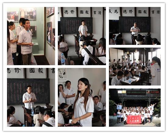 在钱穆钱伟长故居,砖雕门楼上刻着“敦诗悦礼”、“顺天长序”、“返本开新”,廊上印着“敛浮”、“戒躁”等意味深长的词汇,无不昭示着钱家家风。从鹅湖边上的这座小村庄,走出了许多院士。钱家门人的爱国情怀,自强个性,艺术修养,道德品质似乎便是源自于钱家代代相传的家风家教家训。正如八期学员、管理学院12级本科生陈节志说的那样:“一方水土养一方人,到了钱家故居,才能真正体会到那一种情怀,那一份感动。钱家的这种精神值得我们用一生去学习和践行。”