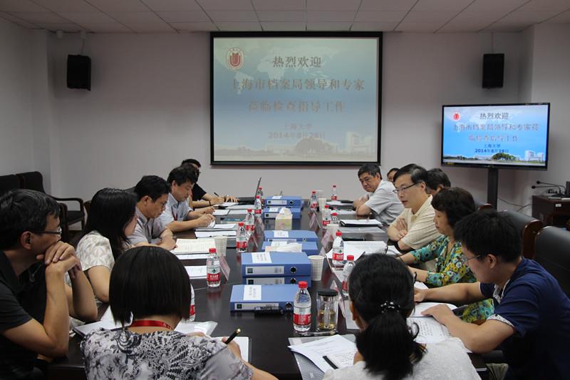 2014年8月28日下午,由上海档案局副局长刘志成带队的上海市档案局执法检查组来到sunbet申搏官方网站档案馆,对2011-2013年sunbet申搏官方网站贯彻实施档案法律法规的情况进行执法检查。sunbet申搏官方网站汪敏副校长及档案馆相关负责人出席了本次行政执法检查汇报会。