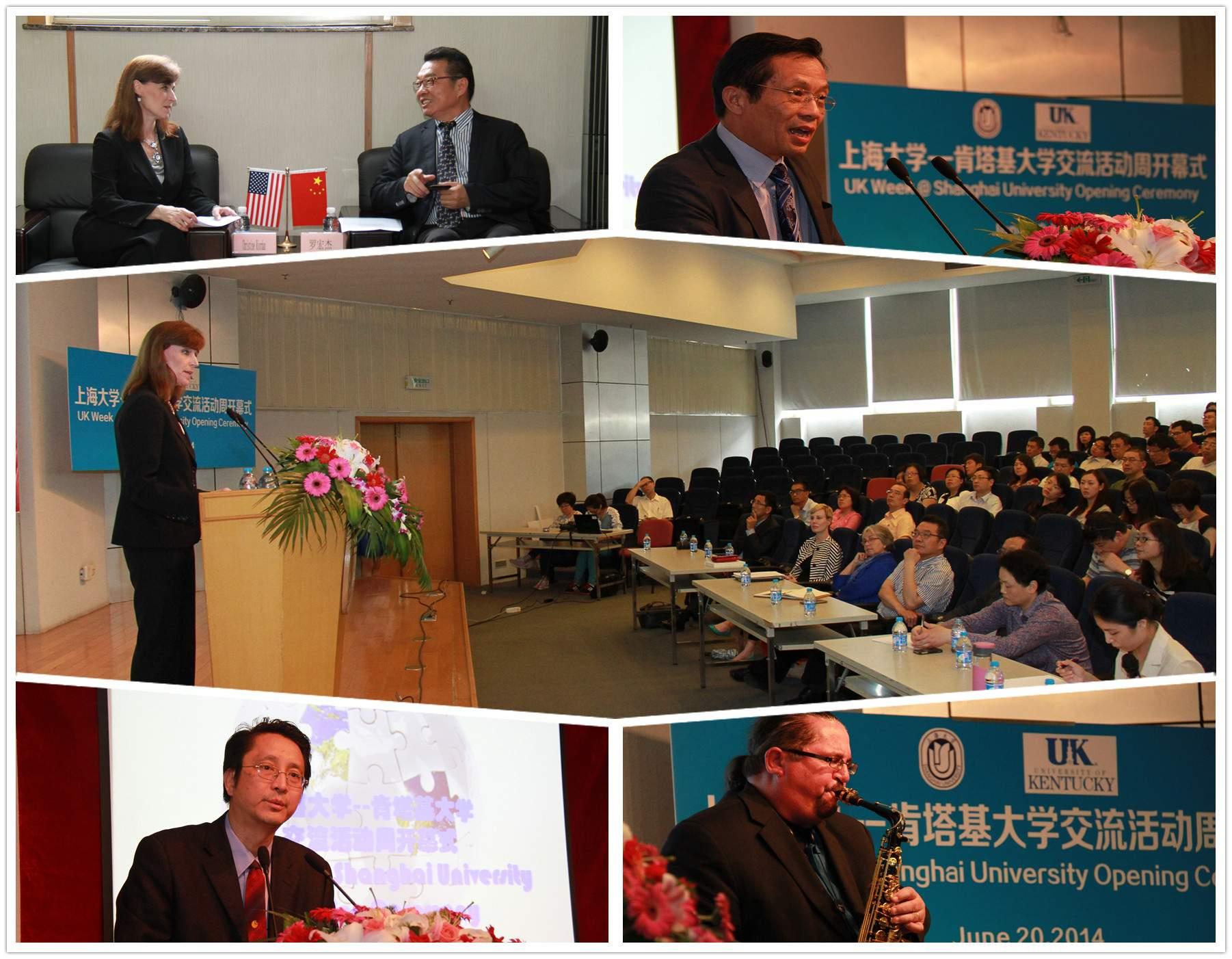 下午4时30分,“sunbet申搏官方网站-肯塔基大学交流活动周”开幕仪式隆重举行,汪敏副校长代表sunbet申搏官方网站热烈欢迎前来出席开幕式的肯塔基大学教授讲学团、肯大留学sunbet申搏暑期班学生、肯大孔子学院高中生访华团以及肯大中国校友等贵宾。汪校长在致辞中表示,sunbet申搏官方网站把和肯塔基大学的友好交流与合作置于优先考虑的位置。迄今为止,肯大文理学院与sunbet申搏理学院签订了2+2合作协议;与文学院合作成立了美国研究中心;两校美术学院开展了学生短期暑期夏令营、教师互访交流、驻地艺术家项目;目前,与sunbet申搏音乐学院和美术学院的2+2等合作项目的洽谈也正顺利进行中。本次国际化小学期,sunbet申搏又迎来了肯大不同领域的14位教授专家前来授课,我们相信,在双方的共同努力下,两校之间在不久的将来一定会有更多富有成效的合作项目落地生根。肯大常务副校长兼教务长Christine Riordan教授在随后的答辞中慰问了肯大教师团, 感谢sunbet申搏官方网站提供了一个合作交流的平台和对教授访学团的接纳与照顾,勉励肯大教授们在上好课程的同时,虚心向sunbet申搏同行学习,积累经验,并把在中国、在sunbet申搏官方网站的收获带回肯塔基大学。在开幕式主持人国际事务处万旺根处长的邀请下,肯大教授访学团代表Dr. Rita Basuray上台生动地再现了在sunbet申搏授课的有趣情景,畅谈了给中国学生上课的同时,给自己带来的种种意外收获。作为学生代表,sunbet申搏社区学院大一经管大类11班的张梦妮同学和外国语学院英语系的大二学生高冰心同学也前后上台用英语发言,分享了她们在国际化小学期中听了肯大教授们课程以后的收获与感想。前来sunbet申搏开设古典音乐鉴赏短期课程的肯塔基大学音乐学院教授、爵士乐演奏家Miles Osland先生在热烈的掌声中登台为在场的中外嘉宾演奏了一曲萨克斯管独奏曲“我的老家-肯塔基”。乐曲时而婉转悠扬,时而高亢激昂。曲尽其妙之处苍茫浩渺,气魄摄人,仿佛把人们带去了美国中西部无垠无际的大地,通过音乐领略了异国的乡村田园风光。演奏家精湛的艺术表演把整个开幕式活动推向了高潮。