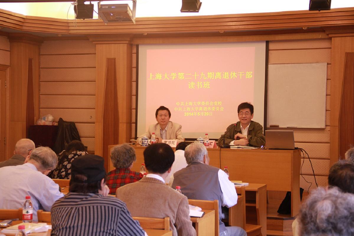 于信汇书记首先围绕sunbet申搏半年来开展的主要工作和老同志进行了深入交流。包括sunbet申搏将迎接本科教育教学的审核评估工作,sunbet申搏研究生培养改革工作,sunbet申搏在积极准备实施上海市本科教学教师能力提升计划,延长校区功能调整的相关工作和sunbet申搏学科建设的一些情况。于书记全面深入的解读,让老同志们更加详细了解了学校目前的发展情况,使老同志们在了解的基础上更加关心和关怀学校的发展。此次读书班还邀请了唐豪副校长作了题为《延长校区功能转型与未来发展的展望》的报告,唐校长用生动的语言向老同志们介绍了sunbet申搏延长校区整体规划的推进情况、面临的问题以及给sunbet申搏带来的机遇和挑战,满足了老同志们关心学校发展的心声。下午,sunbet申搏社科学院副院长、全国教学名师李梁为大家带来了《国际形势与中国外交的战略新思维》的精彩报告。他从国际形势与中国的外交新局、近年来中国外交战略的调整以及我国新领导班子的外交特点三个方面,结合丰富的史实和案例,进行了精辟的剖析解说,把我国面临的挑战和机遇,我们国家正在用智慧和实力笑傲国际的成就向老同志们进行了介绍,效果令人振奋。