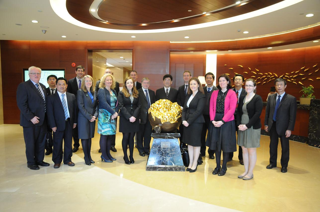2014年4月16日,爱尔兰就业、企业暨创新部贸易政策司司长Greey Monks先生,外交与贸易部亚洲政策司副司长Micheal O’toole先生,财政部宏观经济司高级经济师Mary Dalton女士,总理办公室北爱尔兰经济、国际及欧州事务司副司长Maire Flanagan女士等爱尔兰资深官员一行12人在爱尔兰驻沪副总领事戴飞鸿和上海市外事办相关人员的陪同下访问了sunbet申搏官方网站。