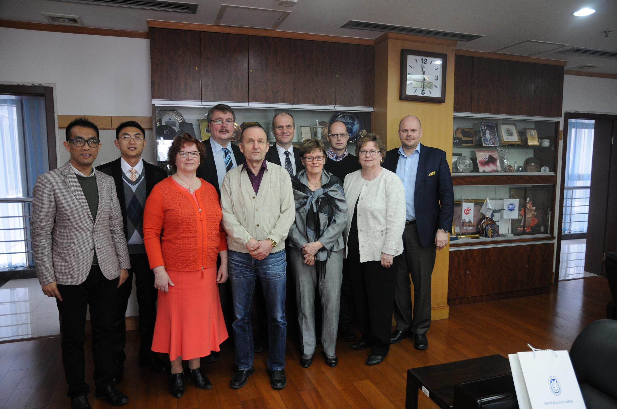 校园参观后,国际事务处万旺根处长在行政楼203接待了代表团一行并主持了会议。万处长首先对代表团的到来表示热烈欢迎。他说,埃斯波市与上海是友好城市,国际化是sunbet申搏官方网站重点推进的发展战略,我们愿意在友好城市的基础上,互派学生,加强交往,希望此次交流能为双方合作打开一扇新的大门。Kaisu Tovionen女士在介绍了代表团人员后,回顾了埃斯波市与上海的交往历史并对sunbet申搏官方网站优美的校园表示了赞美。万处长接着介绍了sunbet申搏官方网站的总体情况。从校园历史、总体规划、办学理念、学术成果、国内综合排名、国际合作、中外合作办学等方面做了详尽的介绍。随后,代表团与校方人员就可能开展的合作事宜开展了自由交流。同时,国际交流学院的黄老师对学院的招生政策做了简单介绍。Mr. Erma对sunbet申搏官方网站非常感兴趣。他详细询问了如何申请在sunbet申搏官方网站就读的相关事宜。双方人员就入学条件、学生住宿、学分互换等事宜进行了热流交流。