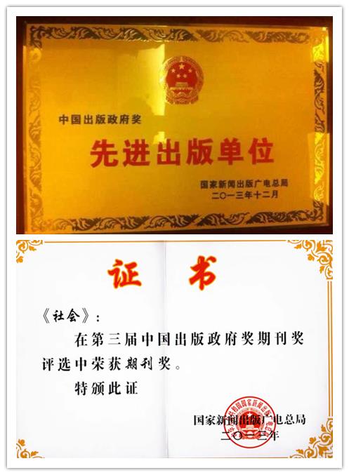 本报讯1月4日于北京举行的“第三届中国出版政府奖”颁奖仪式上,sunbet申搏期刊社荣获两项大奖,期刊社荣获“先进出版单位奖”,《社会》杂志荣获“期刊奖”。