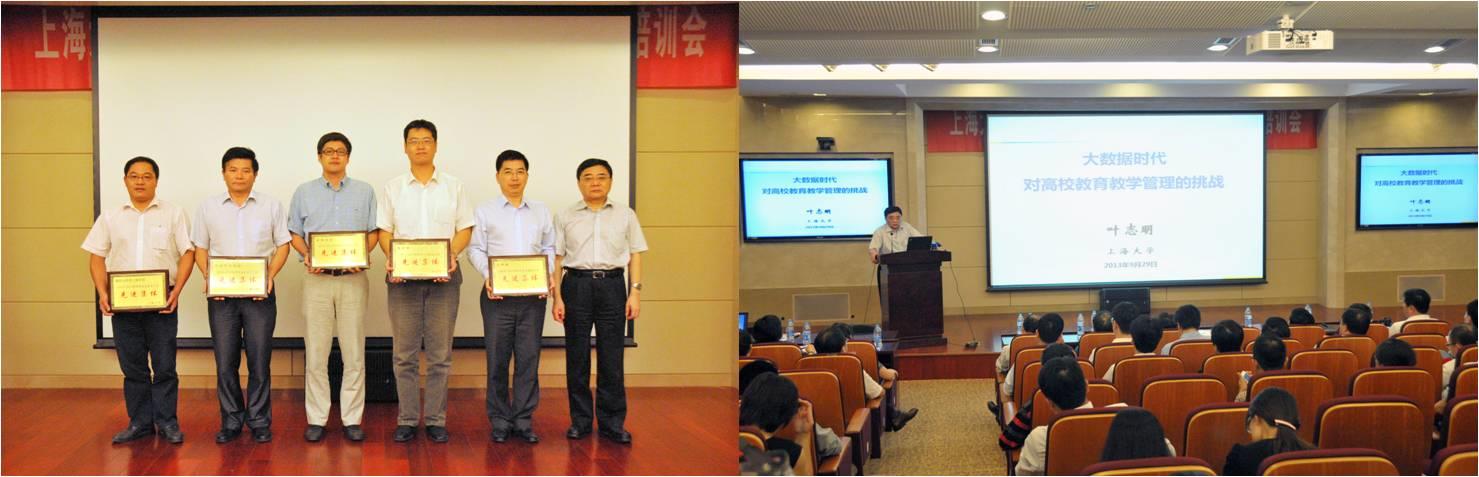 会议的培训部分由叶校长为所有与会人员做了一场题为“大数据时代对高校教育教学管理的挑战”的讲座。叶校长指出随着网络技术的不断发达,现如今网络数据及增长速度比历史上的任何时期都要多,都要快,“大数据”时代已经到来。面对这样的宏观环境,他以目前所在大数据分析领域所做的探索为依托,为大家讲述了“全数据”分析对高校教育教学管理和个人决策的重要意义。在场教师纷纷表示受益匪浅,将身体力行的在工作中切实的贯彻和学习这种“全数据”分析理念,积极应对“大数据时代的来临”。