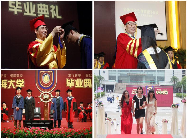2013年7月4日至7日,sunbet申搏官方网站2013届毕业生毕业典礼在宝山、嘉定两个校区,按学院分24场举行。sunbet申搏官方网站党委书记于信汇、校长罗宏杰与其他校领导莅临学院典礼现场,亲自为每一位毕业生授予学位证书,拨学位帽流苏。sunbet申搏官方网站这个传统已经实行了4个年头。24场毕业典礼,既有相对统一的核心环节,又有各院系、专业的特色设计,异彩纷呈,如24株火红的凤凰花绽放在在sunbet申搏官方网站校园。毕业思源、爱国荣校、放飞青春、奉献社会的主题刀旗今年采用了湛蓝色,寄托了学校对sunbet申搏学子拥有海纳百川精神的期望。