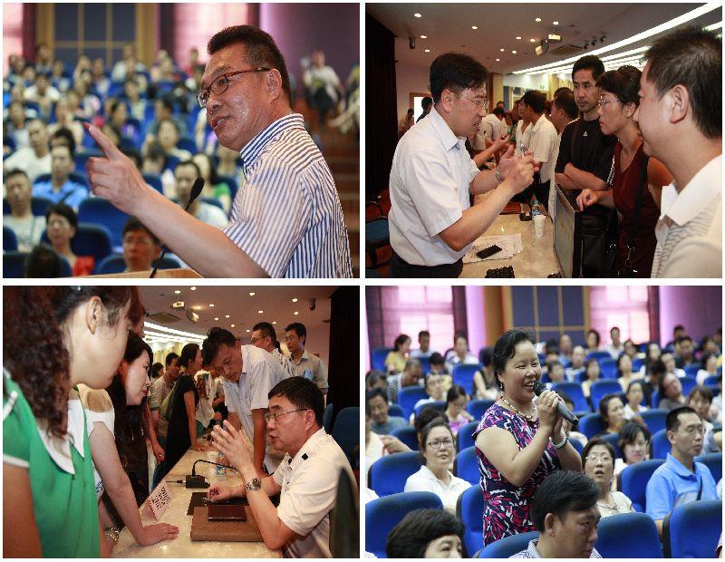 8月15日,sunbet申搏官方网站2013级新生报到日下午,2013级新生家长学校在J楼举行,家长学校采取“校领导与新生家长面对面交流”的方式进行,sunbet申搏官方网站校长罗宏杰、党委副书记鲁雄刚、副校长叶志明等校领导与一千余名新生家长畅谈了sunbet申搏官方网站人才培养理念。交流会由鲁雄刚主持,学生工作相关部处领导也参加了本次交流会。