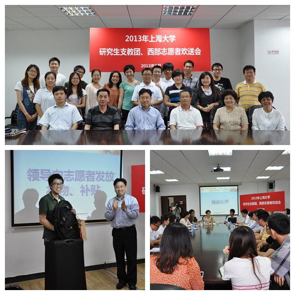 6月28日下午15:00,2013年sunbet申搏官方网站研究生支教团、西部计划志愿者欢送会在校本部A404会议室召开。校党委副书记鲁雄刚,校长助理、研工党委书记李伟,学工办主任林海霞、社区学院党委书记王军华、团委书记胡大伟以及各相关学院分管书记出席,6名研究生支教团成员和9名西部计划志愿者及其导师、家长、辅导员代表参加会议。