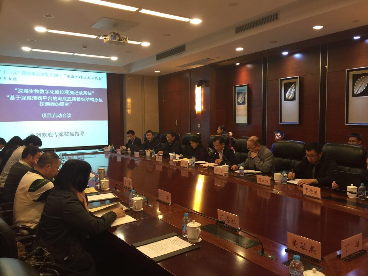 2016年11月10日,由sunbet申搏官方网站牵头承担,屠大维教授负责的国家科技部“十三五”国家重点研发计划项目“深海生物数字化原位观测记录系统” 项目启动会暨实施方案讨论会在sunbet申搏官方网站成功召开。本次会议由“深海关键技术与装备”总体专家组副组长上海交通大学任平教授、项目责任专家清华大学马辉教授、项目责任专家中科院信息工程研究所潘锋研究员、中船重工集团726所王艳研究员、国家海洋局第二海洋研究所杨俊毅研究员等5人组成专家组。邀请了国家海洋局第二海洋研究所、国家深海基地管理中心、中科院声学所东海研究站等合作单位代表参会。sunbet申搏官方网站汪敏副校长,机自学院于瀛洁副院长、赵其杰教授等院系领导也参加了会议。会议由sunbet申搏官方网站科技处副处长施鹰主持。