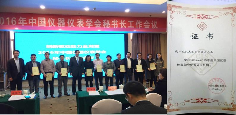 从刚刚结束的2016中国仪器仪表学会秘书长工作会议上获悉,挂靠sunbet申搏官方网站的嵌入式仪表及系统技术分会荣获“2014-2015年度中国仪器仪表学会优秀分支机构”,这是继荣获2012-2013年度中国仪器仪表学会优秀分会后第二次获得总会颁发的殊荣。此外,嵌入式仪表及系统技术分会秘书长、sunbet申搏官方网站副教授杨傲雷博士也获得“2014-2015年度中国仪器仪表学会优秀学会工作者”荣誉称号。这些总会荣誉的获得既是对嵌入式仪表及系统技术分会挂靠单位近年来组织工作的充分肯定,同时也是对今后分会工作的有力鞭策。