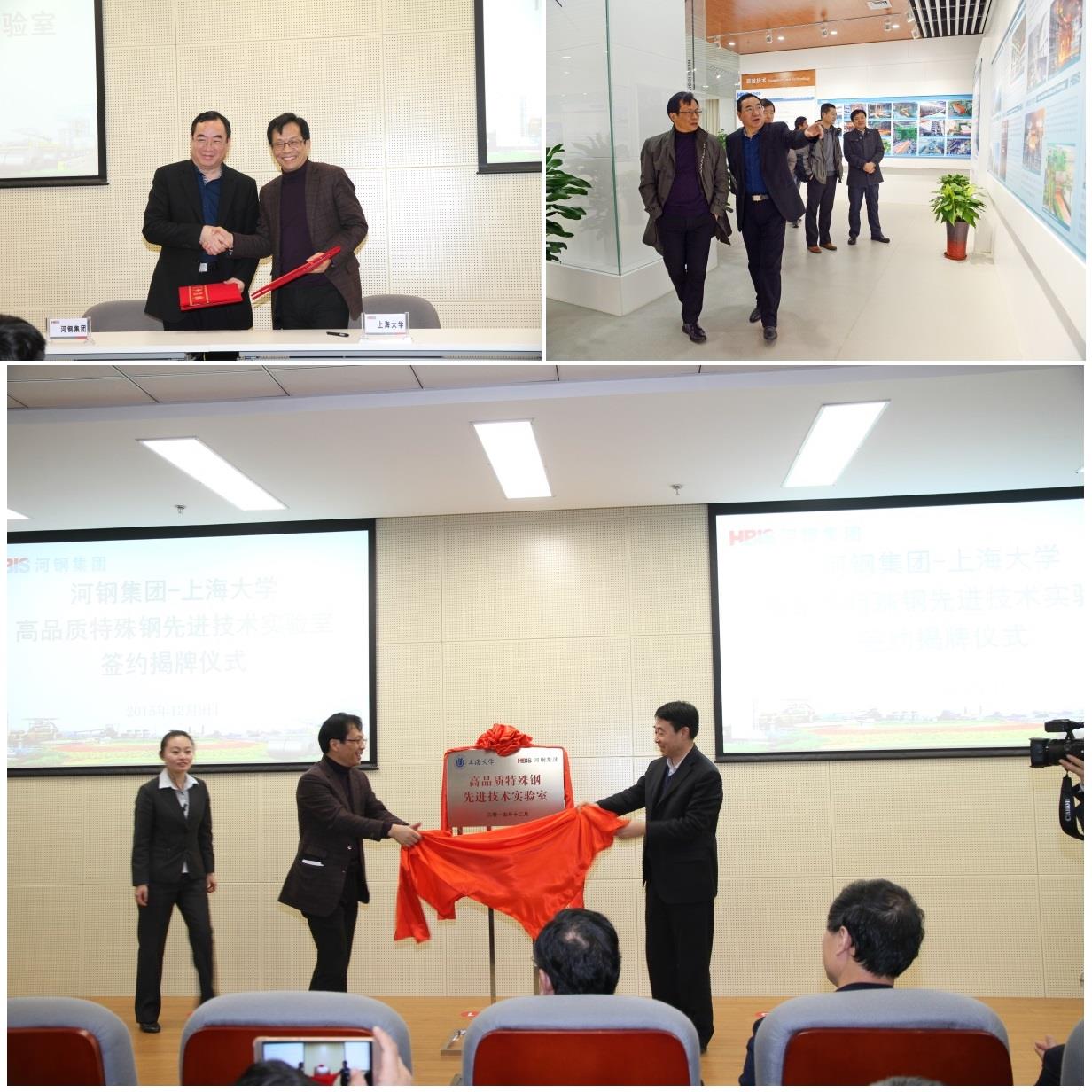 2015年12月9日,河钢集团与sunbet申搏官方网站联合共建”高品质特殊钢先进技术实验室”签约仪式在河钢集团总部举行,河钢集团彭兆丰总经理、王新东副总经理、河钢钢研院院长/集团科技部李建新总经理、副院长吝章国和常金宝及集团科技部副总经理刘义、党委组织部副部长冯志杰和河钢石钢技术部部长刘勇以及相关部门负责人10余人参加会议。sunbet申搏官方网站副校长汪敏教授、科技处副处长李爱军教授、材料学院院长张捷宇教授、国家重点实验室主任任忠鸣教授和吴广新副研究员出席仪式。