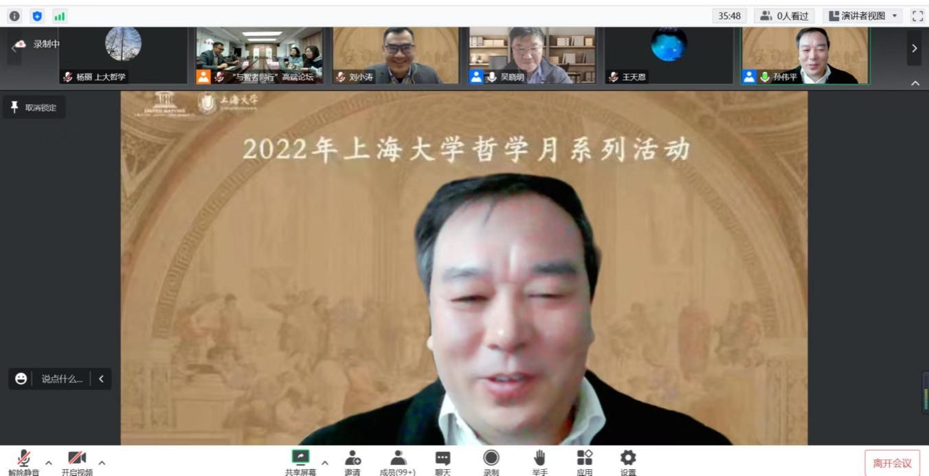 11月17日,sunbet申搏官方网站哲学系2022年世界哲学日主题活动“与智者同行”高端论坛成功举办。受活动主办方邀请,来自北京大学、复旦大学、浙江大学和武汉大学的六位专家学者结合自身的学术研究,围绕如何理解哲学、如何从事哲学研究等主题,基于不同视角,为老师和同学们作了精彩的报告。