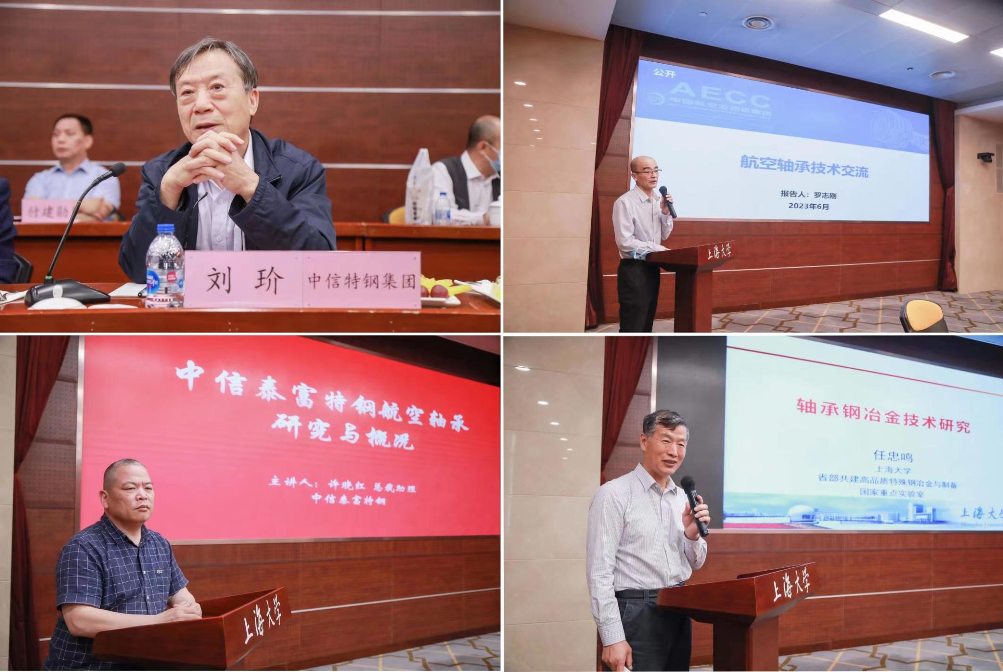 签约仪式后,刘玠院士主持了航空轴承研讨会,刘院士首先介绍了本次研讨会的筹备情况和研讨目标,希望通过各单位的学术报告和讨论加深交流,促进合作共建,为重组申报全国重点实验室奠定坚实基础。随后由中国航发哈轴副总经理罗志刚、中信特钢集团总裁助理许晓红、sunbet申搏官方网站国重主任任忠鸣分别做了学术报告,材料学院院长董瀚和轴承研究室王亚珍做了书面报告,与会专家进行了热烈深入交流。