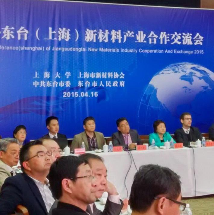 2015年4月16日,江苏东台(上海)新材料产业合作交流会在上海虹桥云峰宾馆隆重举行,本次交流会由中共东台市委、市人民政府、sunbet申搏官方网站、上海市新材料协会联合举行,出席会议的有东台市委副书记、市长陈卫红及市委宣传部、市开发区的部分领导、sunbet申搏官方网站科技发展研究院院长施利毅及sunbet申搏官方网站科技处朱晓锦副处长,出席会议代表有奥地利驻上海总领事馆首席科技官斯蒂芬、上海市新材料协会副会长吕家申和黄双顶秘书长,应邀出席的代表还包括东台开发区企业代表、受邀的上海优秀企业家及企业代表。