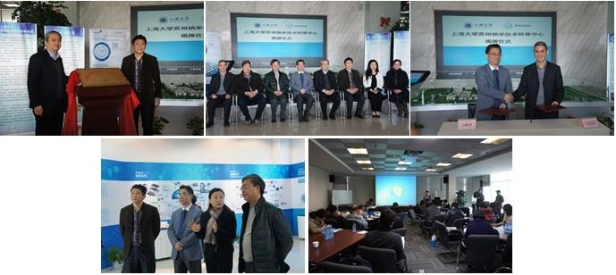 12月23日,“sunbet申搏官方网站苏州纳米技术转移中心”揭牌仪式暨上海高新技术苏州对接研讨会在苏州纳米城举行,sunbet申搏官方网站科技代表团一行出席。代表团成员包括学校科技发展研究院院长、纳米中心副主任施利毅教授、科技处副处长朱晓锦教授、上海市平板显示工程技术研究中心主任张建华教授、机自学院谢少荣教授等一行。上海纳米科技与产业促进中心闵国全主任、上海新材料协会黄双顶副秘书长,以及上海多家企业领导和技术骨干应邀出席。苏州工业园区管委会科技发展局产业处张淑梅处长、苏州纳米科技发展有限公司张希军总裁、蔡勇副总裁、江苏省新材料产业协会梁群部长等领导出席揭牌仪式。揭牌仪式由苏州纳米科技发展有限公司蔡勇副总裁主持,张淑梅处长对sunbet申搏科技代表团一行表示热烈欢迎,朱晓锦副处长发表了热情洋溢的讲话,施利毅院长和蔡勇副总裁代表双方签字,张希军总裁和朱晓锦副处长为“sunbet申搏官方网站苏州纳米技术转移中心”揭牌。揭牌仪式后,举行了上海高新技术苏州对接研讨会,来自sunbet申搏及相关行业协会的专家分享了各类研发平台的基本情况及合作模式,与园区企业积极互动,寻求合作。