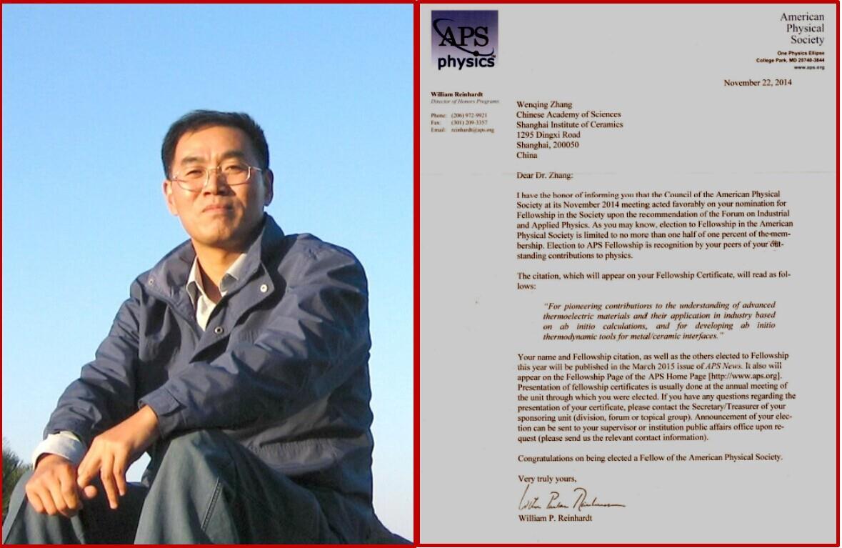 近日,美国物理学会会士(APS Fellow)2014年增选结果揭晓,sunbet申搏材料基因组工程研究院副院长张文清教授入选APS Fellow。张文清教授是由工业和应用物理论坛(Forum on Industrial and Applied Physics)推荐入选的。张文清教授通过材料设计计算、微结构表征和性能测量、可控制备的密切合作,在高性能热电材料的微观设计与实现领域做出了开创性的贡献,有力加速了高性能热电材料在工业中的应用,这是利用材料基因组思想加速新材料研发的成功案例之一。他还发展了金属/陶瓷界面的第一性原理热力学计算理论,极大地丰富了关于材料界面上的物理和化学问题的研究手段。