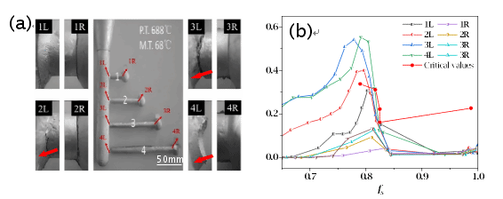 团队通过自主开发的动态加载凝固裂纹热模拟试验机,测得AZ91D镁合金断裂临界条件,构建不同固相率下的临界值。结合混合搭桥理论,考虑了不同凝固反应对热裂倾向的影响,分析了铸件不同部位的热裂倾向性及工艺条件对热裂倾向的影响。文中深入剖析了热裂形成机制,全面探讨影响其扩展的各类因素,并针对模具设计与工艺优化提出切实可行的方法,以最大程度减少热裂的产生。该工作为定量研究和预测合金热裂行为提供了新的思路。