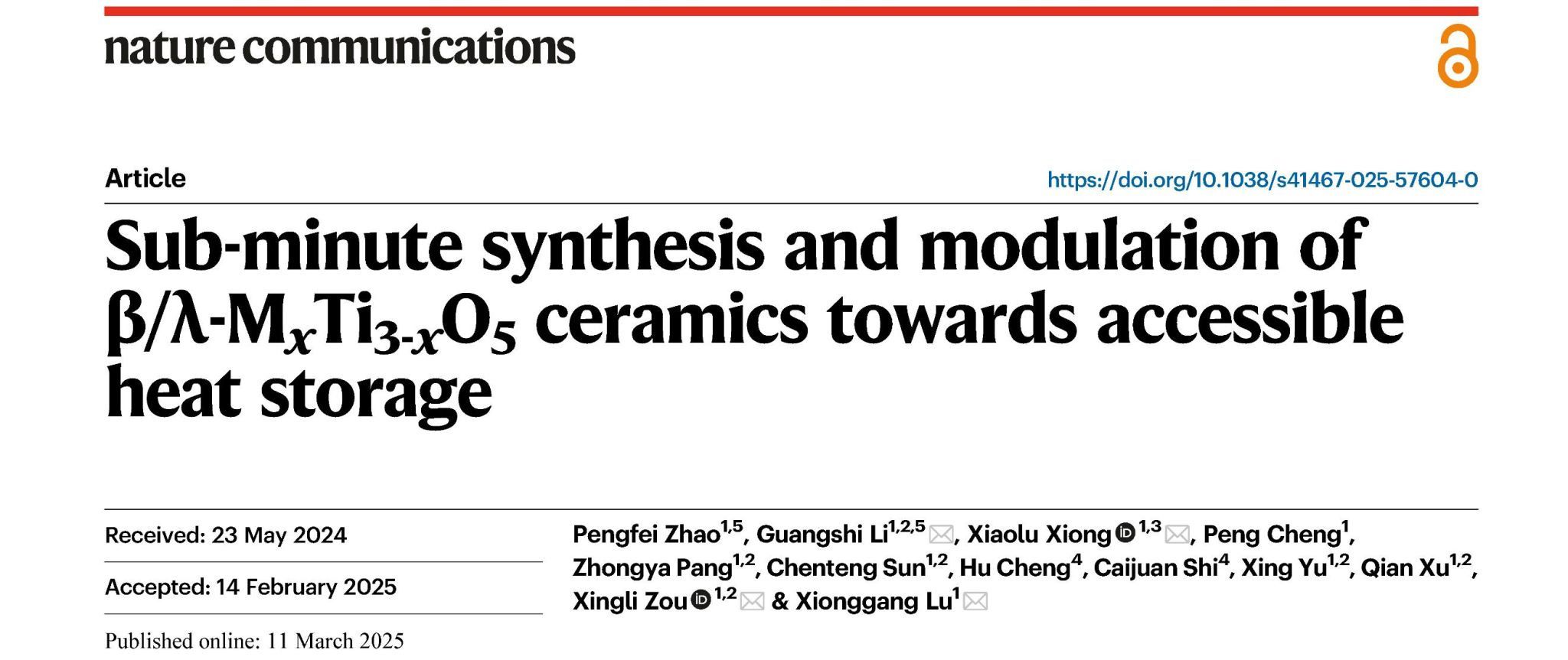 近日,sunbet申搏官方网站材料科学与工程学院鲁雄刚/邹星礼教授领衔的氢冶金与低碳技术团队在《Nature Communications》发表题为"Sub-minute synthesis and modulation of β/λ-MxTi3-xO5ceramics towards accessible heat storage"最新研究成果。