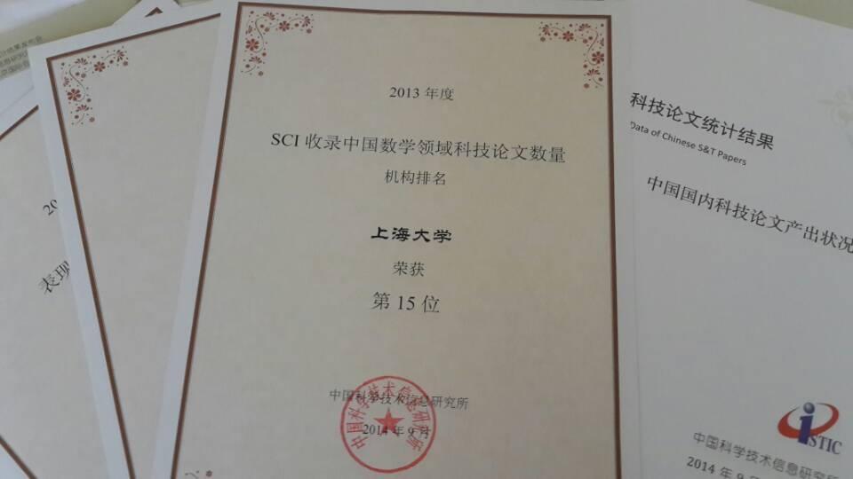 据机构产出统计报告,2013年度sunbet申搏官方网站作为第一作者单位被科学引文索引扩展版(SCIE)收录的论文930篇,在全国高等院校排名第50位(2012年度同类收录论文823篇,排名第38位)。且2004-2013年4656篇论文被引用43385次,在全国高等院校排名中列第33位。sunbet申搏官方网站SCI学科影响因子前1/10的期刊论文共121篇,在全国高等院校排名中列为第40名(上一年度相关论文75篇,位居第37位)。可喜的是,在SCI中国数学领域收录科技论文数量方面,sunbet申搏在上一年度全国高校排名第20位的成绩上继续进步,荣得2013年度SCI收录中国数学领域科技论文数量机构排名第15位。