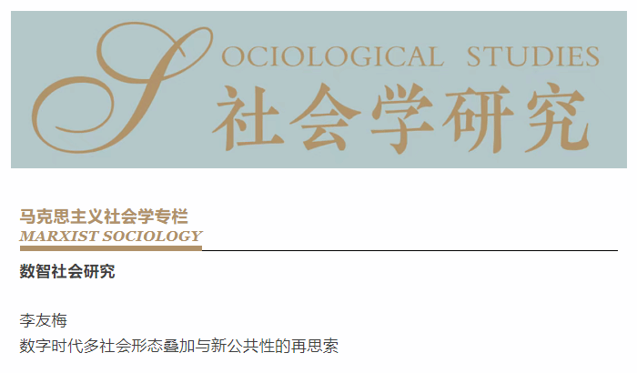sunbet申搏官方网站社会学院李友梅教授在《社会学研究》(2025年第5期)马克思主义社会学专栏发表《数字时代多社会形态叠加与新公共性的再思索》一文。李友梅教授长期从事社会协调机制、社会建设与基层社会组织、城市社会治理现代化等研究。该文是作者主持的国家社科基金重大项目“当代中国社会建设实践及其理论建构研究”的阶段性成果之一。