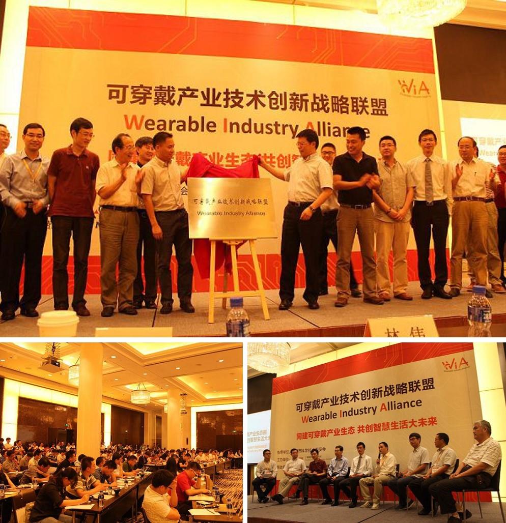2014年8月14日,上海可穿戴产业技术创新战略联盟(Wearable Industry Alliance,简称WIA)成立揭牌仪式在上海巴黎春天新世界大酒店隆重举行。来自可穿戴产业链、科研单位及相关行业超过250名嘉宾代表莅临会议。本次会议特别邀请到上海市科委高新处肖菁,上海市嘉定菊园经济区副主任陈烨,上海集成电路行业协会秘书长蒋守雷,中科院上海微系统所副所长赵建龙,sunbet申搏官方网站科技术处副处长施鹰教授,联想研究院上海分院院长毛世杰,博通技术总监杨学贤,博世市场总监Hsieh Peter,盛大果壳代表,德赛微米CEO许友金,上海微技术工研院首席分析师曹明霞等业界专家参加并发言。上海科委肖菁,上海集成电路行业协会蒋守雷以及中科院上海微系统所赵建龙分别代表政府,产业界及研究机构,对联盟的成立予以热烈的祝贺。