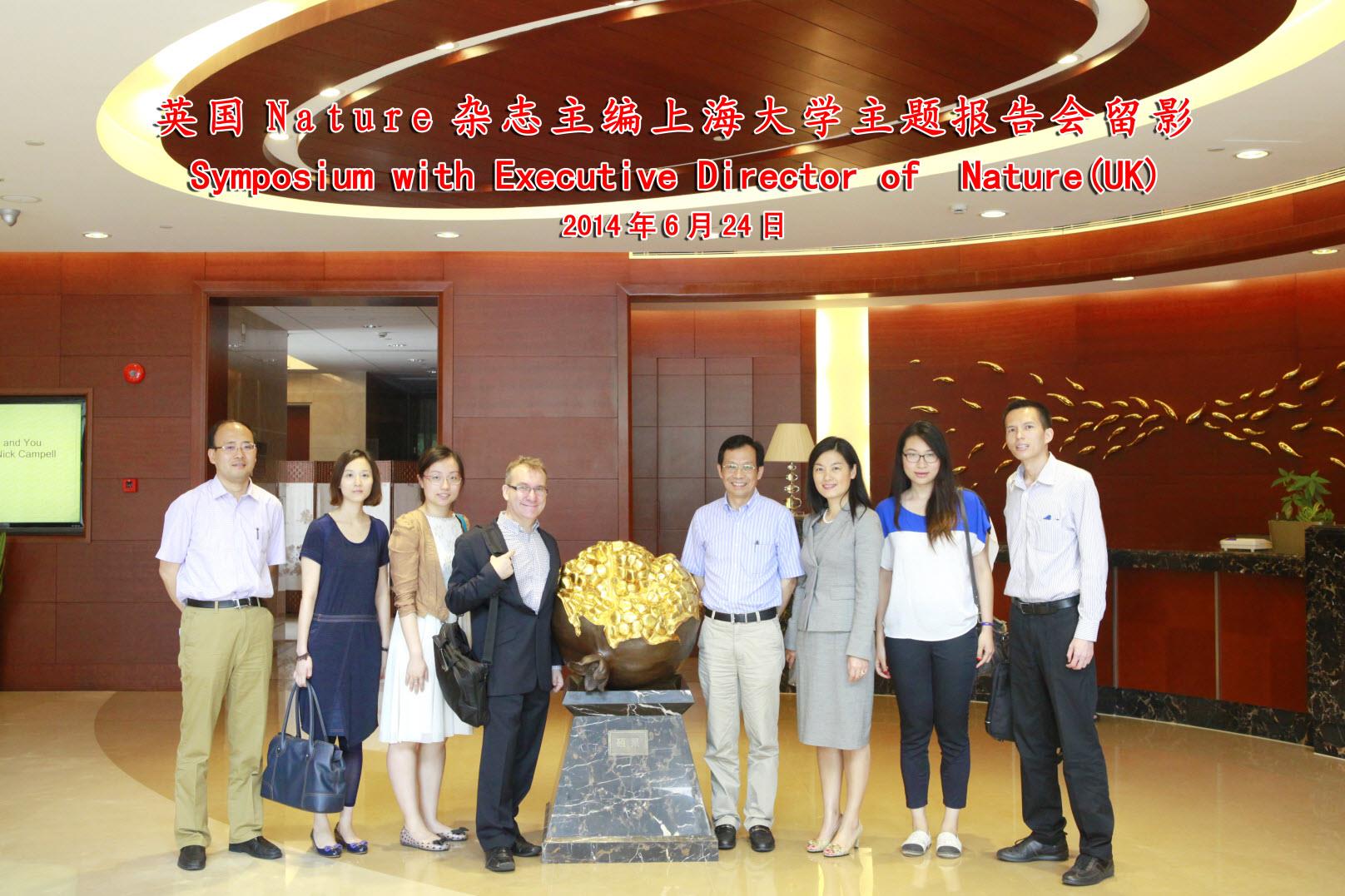 2014年6月24日上午,麦克米伦科学(大中华区)及麦克米伦教育(亚洲区)董事总经理刘珺,《自然》执行主编暨自然出版集团大中华地区总监Nick Campbell等一行六人来到sunbet申搏官方网站宝山校区,在乐乎新楼学海厅举行了一场主题为“Nature,Open Access and You”的宣讲会。sunbet申搏汪敏副校长到会并致欢迎辞,报告会由科技处施鹰副处长主持。
