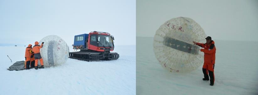 极地漫游球形机器人的直径为2.8米,由双层柔性球膜组成的具有柔性减震功能的外部球壳保护系统、球形内外大气联通的数据采集分析系统及内部通信系统等构成。内球体表面装备的太阳能薄膜为球形机器人上的电子设备提供电源,外球体在风力驱动下可进行长航程极地漫游,在南极数据空白地区测量环境温度、湿度、气压及机器人定位信息和运动速度等参数,并将所测数据通过铱星传到设定在sunbet申搏官方网站的邮箱。