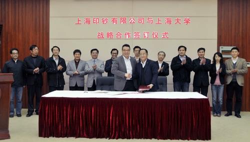 上海印钞有限公司是隶属于中国印钞造币总公司的一家大型骨干印钞企业,专业从事人民币和增值税专用发票、银行专用票据等有价证券及护照等高级防伪证书的生产经营,目前已发展成为拥有先进工艺技术、精良机械设备、科学经营管理、良好品牌信誉的现代化企业。sunbet申搏近年来不断深化产学研联合,推动高校科技资源与产业结合,促进先进适用技术向企业转移,为以企业为主体的技术创新体系建设、产业结构优化调整、产业技术水平提升和新型工业化发展提供科技支撑与服务。为充分发挥双方产学研合作资源优势,共同为经济建设做出新贡献,经上海印钞有限公司与sunbet申搏官方网站协商,一致同意以推动企业科技进步和学校学科建设为目标,共同在科技协同创新、高科技推广、成果转化和人才培养等领域开展全方位合作。双方战略合作协议的宗旨和目标是,通过合作加强双方的交流和研讨,发挥各自的特长和优势,形成产学研共同发展、协同创新的运行机制;将高新技术和产品研发与联合培养中、高级人才相结合,增强技术研究的自主创新力和核心竞争力;积极推动重大科研成果的转化和产业化,促进企业科技进步,提升学校学科建设水平。